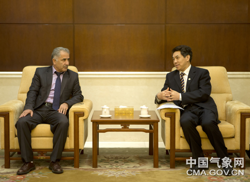 中国气象局局长郑国光在京会见了塔吉克斯坦国家水文气象局局长默罕默德・萨法罗夫一行。庄白羽 摄